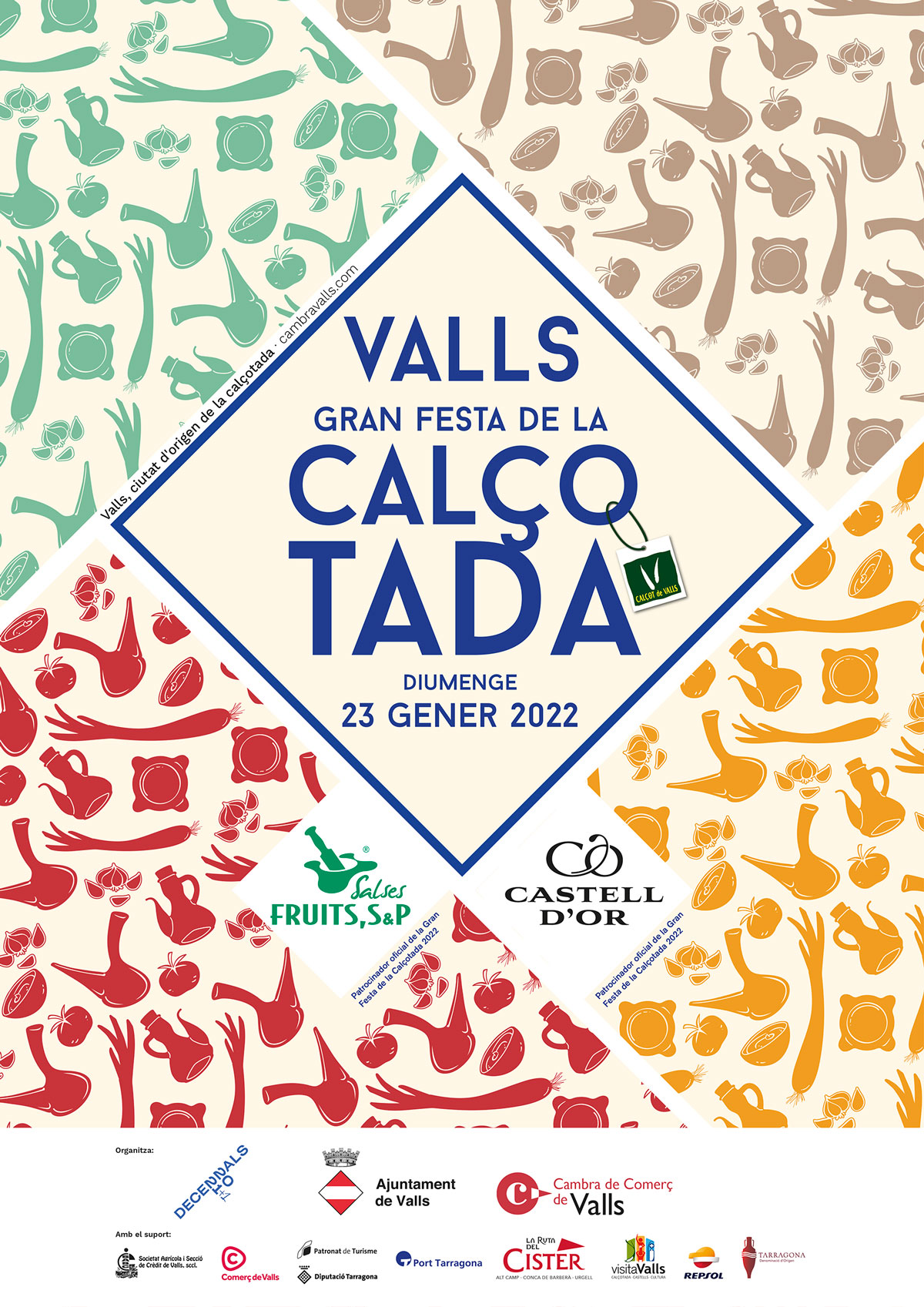 La edición de la Gran Fiesta de la Calçotada de Valls 2022 se celebrará una semana antes de lo habitual, el 23 de enero. Un año más, Salses Fruits S&P sigue siendo el patrocinador oficial, y este año, comparte patrocinio con Castell d'Or. Dos empresas del territorio que apoyan la manifestación gastronómica más importante y popular de Cataluña.